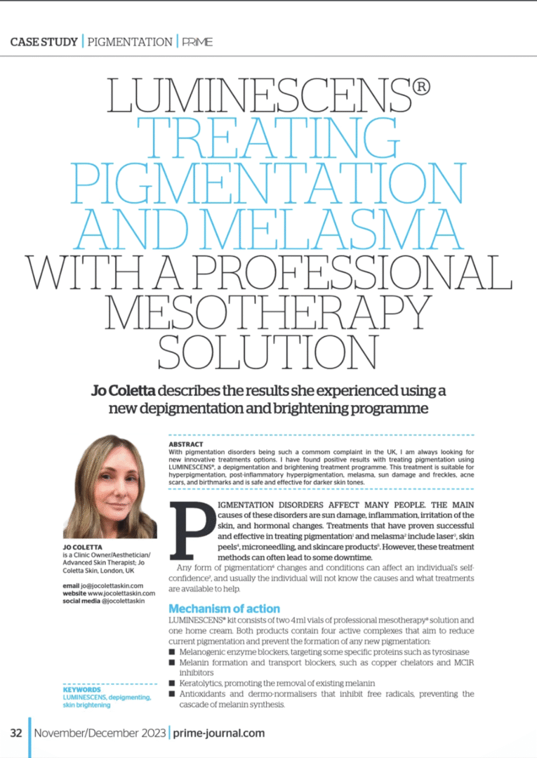 LUMINESCENS treating pigmentation and melasma with a professional mesotherapy solution